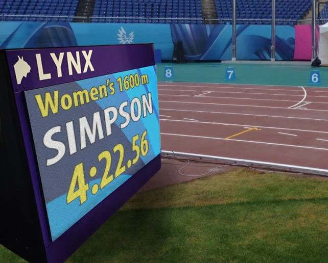 The LED infield video displays from Lynx are custom designed to meet the demands of championship-level WA athletics events. These modular displays are available in 1, 2, or 3-sided units and integrate seamlessly with FinishLynx technology to display live results throughout the venue. Each LED panel is 2 meters long by 1 meter high and provides high visibility text, images, or animated graphics for superior fan engagement in large indoor or outdoor venues. Each display unit can receive data independently over an HDMI connection, or multiple units can be connected with an Ethernet cable to broadcast a single video/graphic feed simultaneously to displays located across the infield. Software Compatibility Video Display Module on Lynx Vision Cameras Construction & Frame